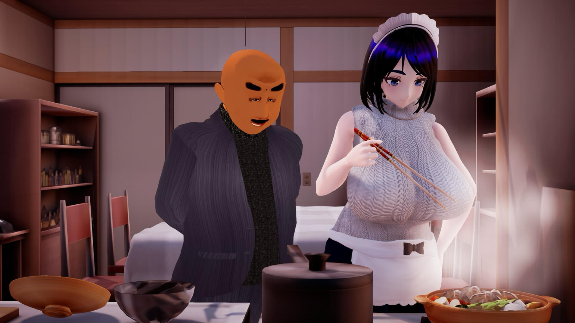 居酒屋的常客大多是为她的美貌、丰满胸围与臀部而来。