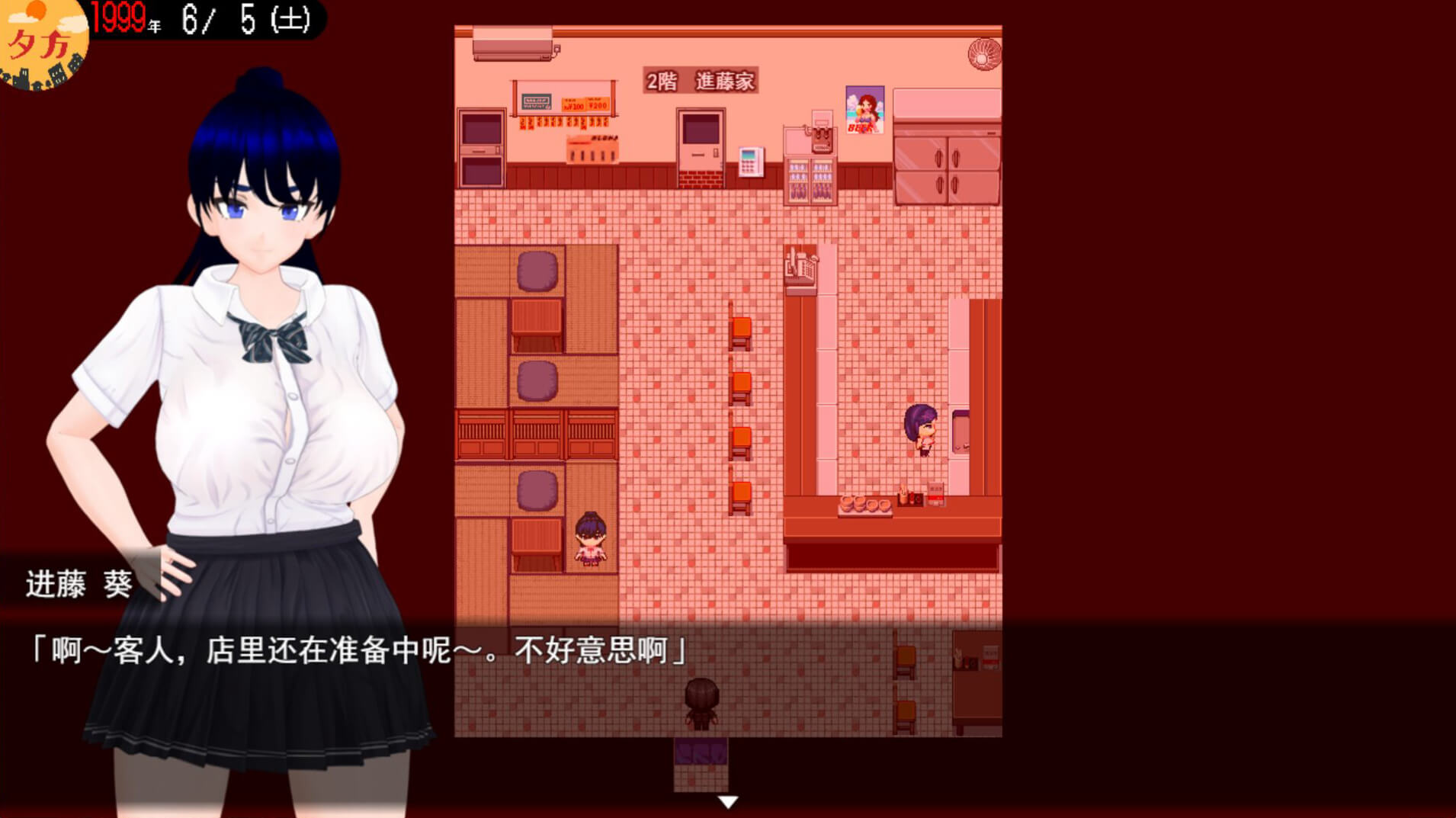 放学后,在母亲经营的居酒屋帮忙的高〇生女儿。