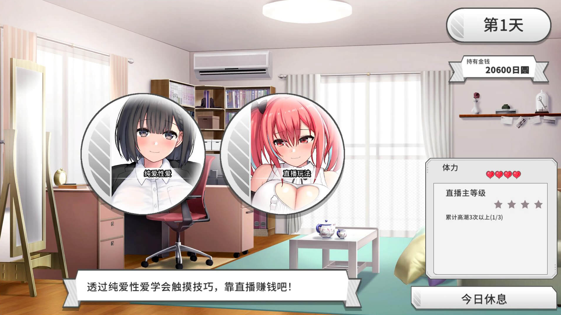 ◇ 每天与女友互动,决定当天的直播主题