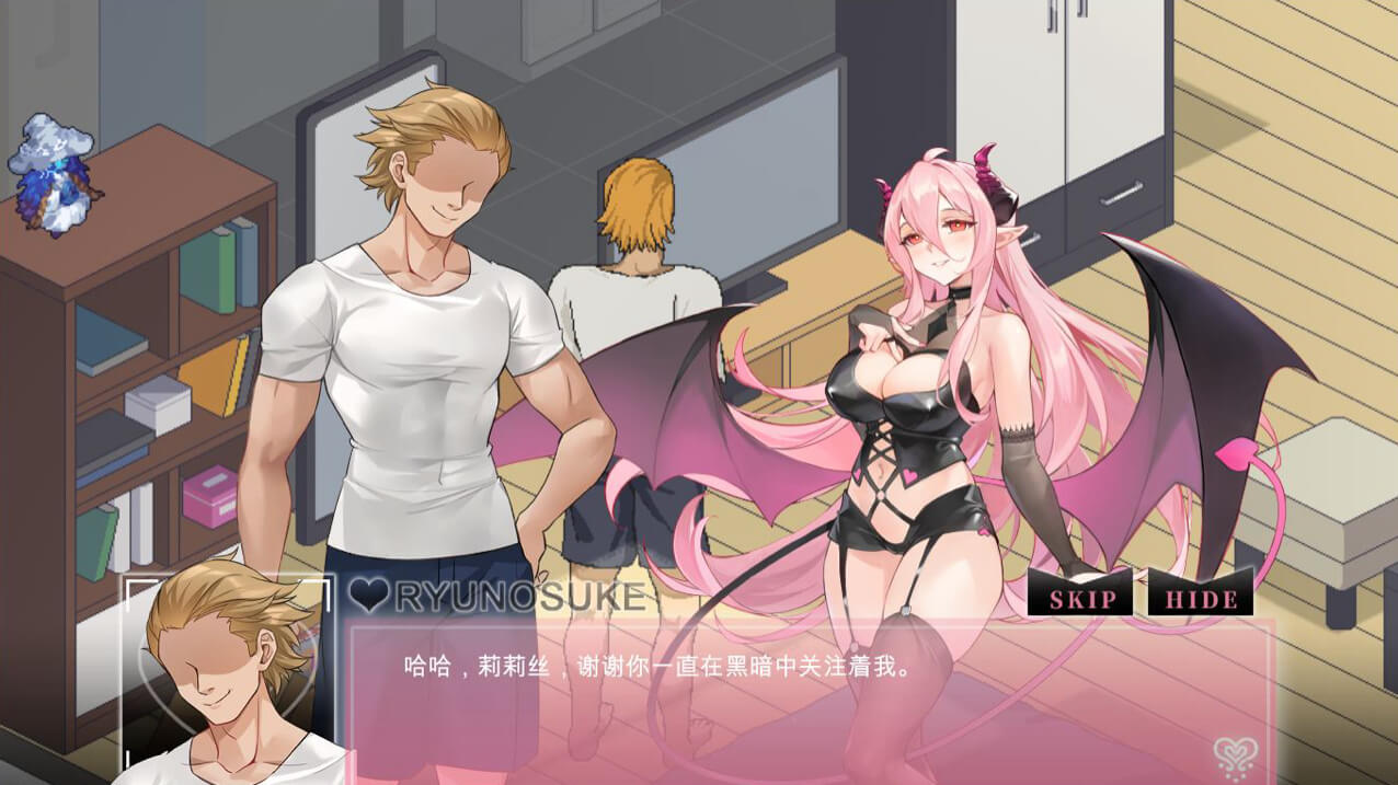最大不同是男主还有一个魅魔可以召唤出来使用特殊技能帮忙攻略女主。